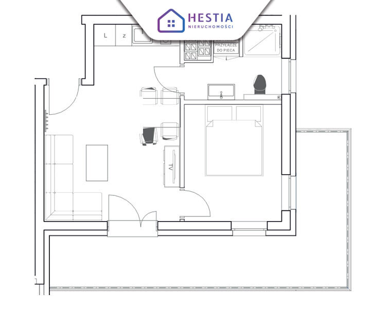 Łączna powierzchnia 31,61 m² obejmuje: przestronny salon z aneksem