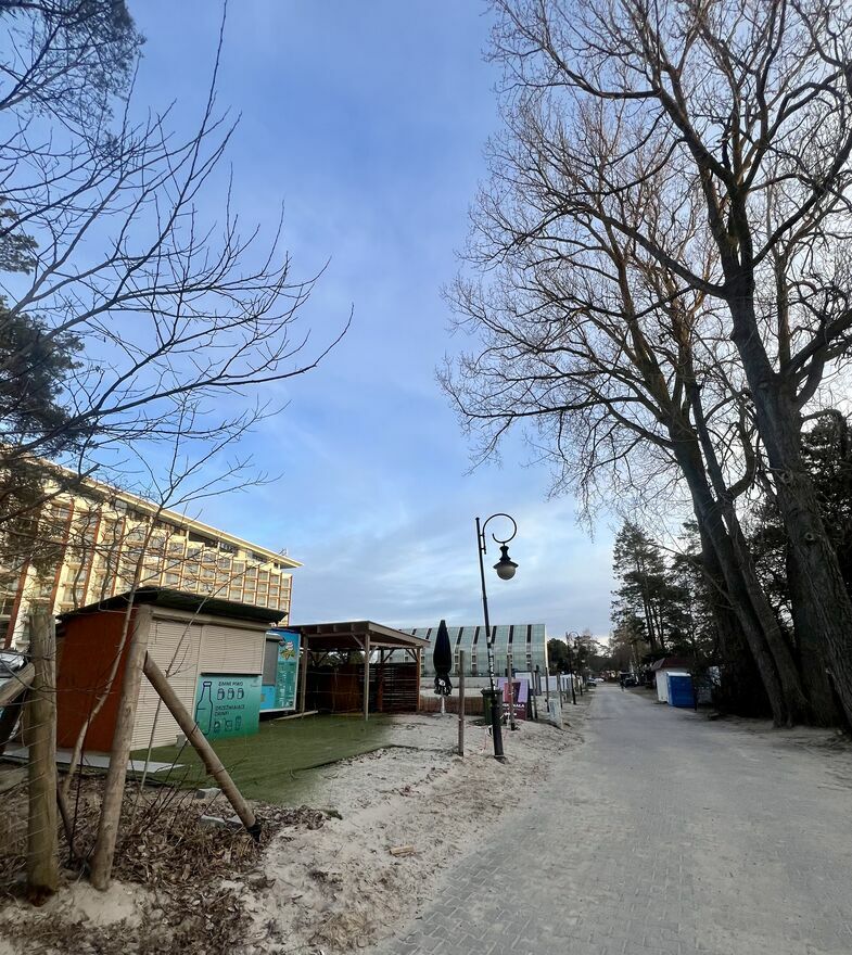 Działka znajduje się tuż przy najlepszym zejściu na plaże, dostosowanym dla rodzin z dziećmi, niepełnosprawnych, zjazdem technicznym i piękną, szeroką plażą. Jest to miejsce wprost idealne dla gastronomii, której brakuje na plaży, dmuchańców czy innych usług. Z uwagi na dużą powierzchnię placu (ponad 3000m2) jest to również miejsce odpowiednie dla salonu gier czy marketów.